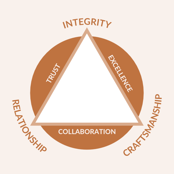 For our team, this model is a reminder of who we are as a company and of the values that guide our work. For our clients, it communicates our dedication to ensuring every space is built on a foundation of integrity and trust, nurtured through collaborative relationships, and crafted with impeccable skill and care.